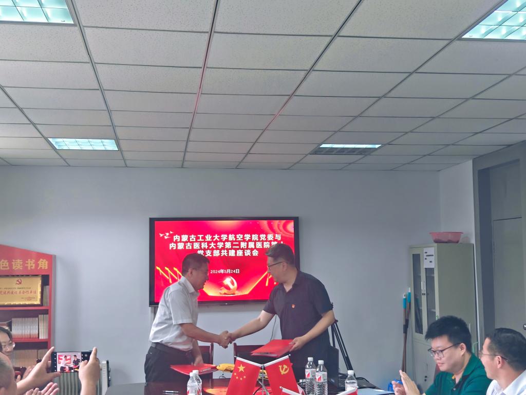 为深入贯彻落实党的二十大精神,铸牢中华民族共同体意识,积极推进党建“四个融合”,全面提升党建引领作用,5月24日上午,公司党委与内蒙古医科大学第二附属医院第十党支部开展党建共建活动。公司副书记、经理郭俊宏,副书记、副经理吴斌,内蒙古医科大学第二附属医院副经理杨学军,内蒙古医科大学第二附属医院第十党支部书记聂继平出席活动。