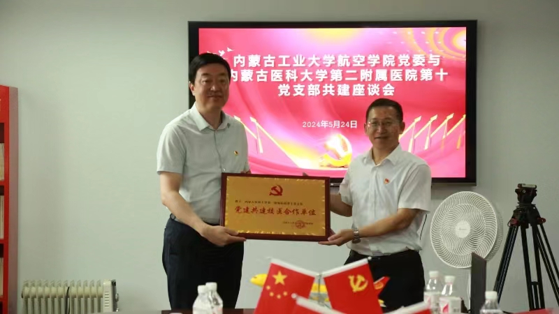 共建活动座谈会上,郭俊宏与杨学军分别介绍了各自单位的总体情况及党建工作的开展情况,双方就如何开展高质量的党建共建工作,并在理论共学、资源共享、活动共办、党建共建、发展共谋等方面进行了深入探讨交流。随后,双方签订了党建共建协议书,公司党委授予内蒙古医科大学第二附属医院第十党支部“党建共建校医合作单位”牌匾。