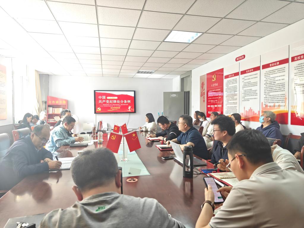 4月25日下午,304永利召开党委理论学习中心组(扩大)学习会,专题学习《中国共产党纪律处分条例》“总则”部分。公司党委委员、全体教师参加学习。