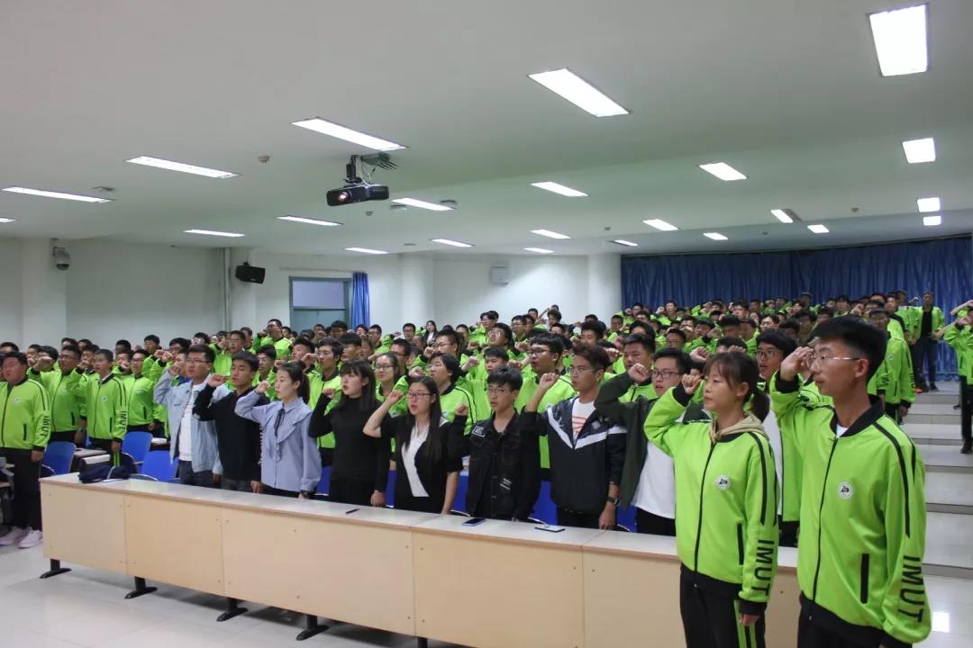 团学办公室主任晁卫宁老师带领同学们重温入团誓词,合唱团歌。