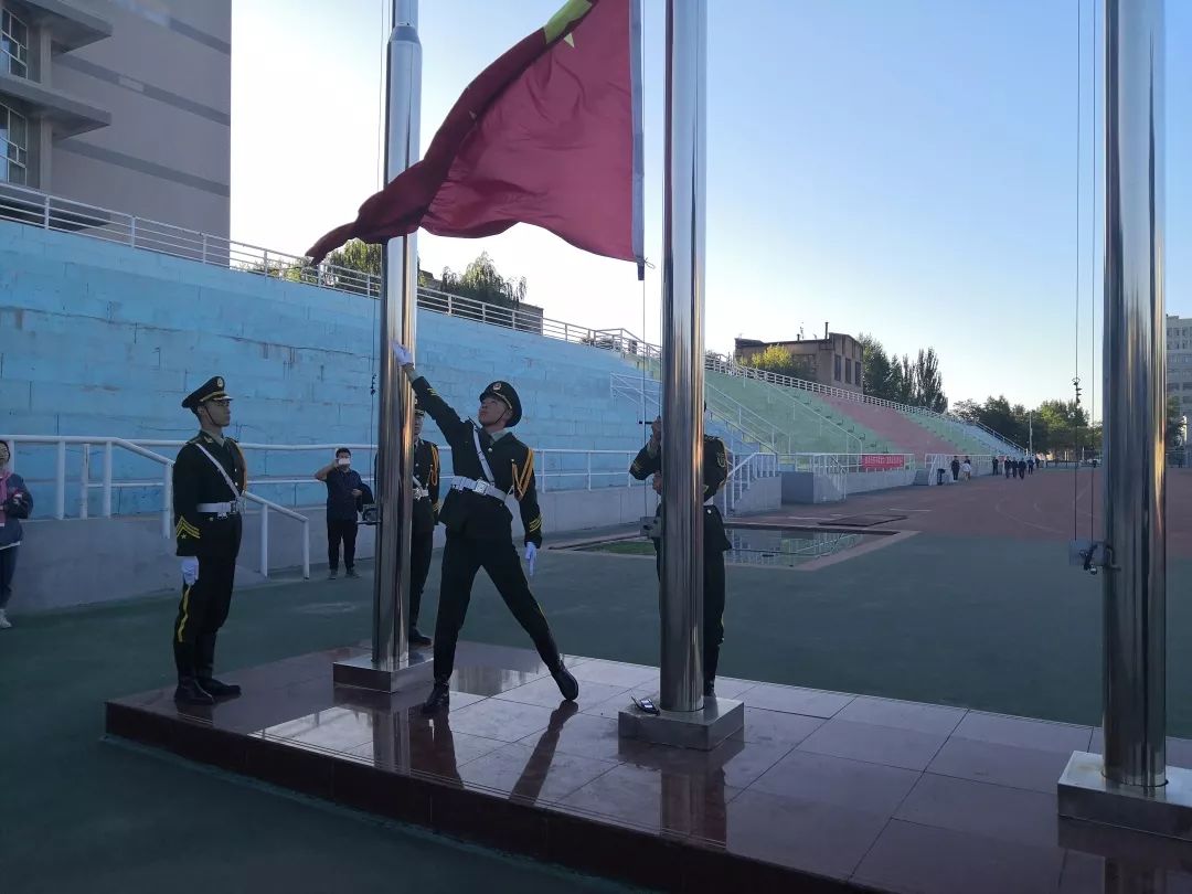 清晨7:00升旗仪式准时开始。迎着朝阳,国旗班的升旗手们踏着整齐的步伐,护卫着鲜艳的五星红旗入场。随后,伴随着《义勇军进行曲》的响起,全体员工集体行注目礼,五星红旗冉冉升起。五星红旗激发了同学们不断向上的斗志,点燃了同学们强烈的爱国热情。
