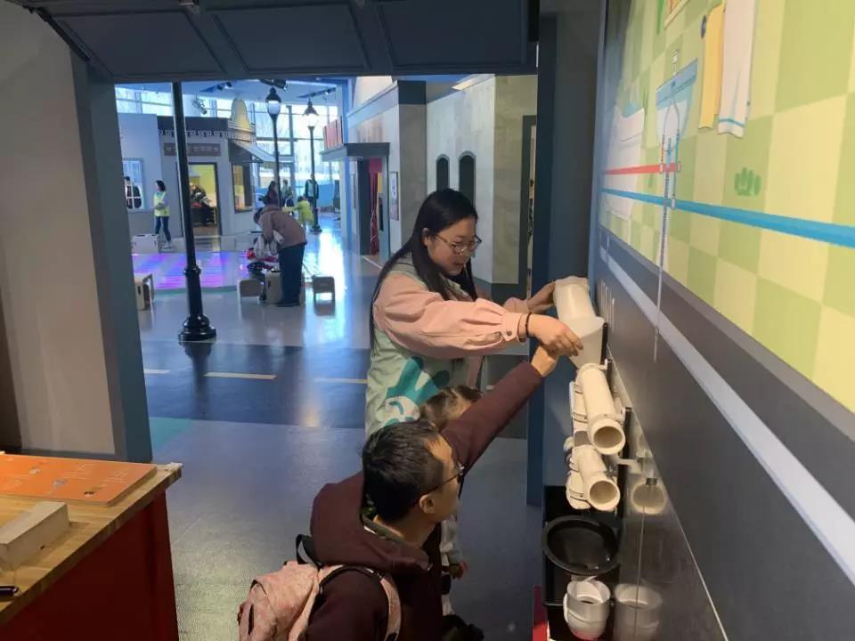 青年志愿者先后深入博物馆超市展区、消防展区、科技展区为学前儿童及家长讲解相关知识,目的在于提高儿童认知能力、实践能力及创新思维能力。