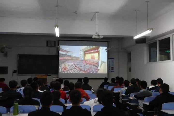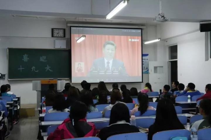 2017年10月18日晚,304永利员工在老师和员工会的组织下于自习室观看第十九届全国人民代表大会开幕式,听取总书记报告。