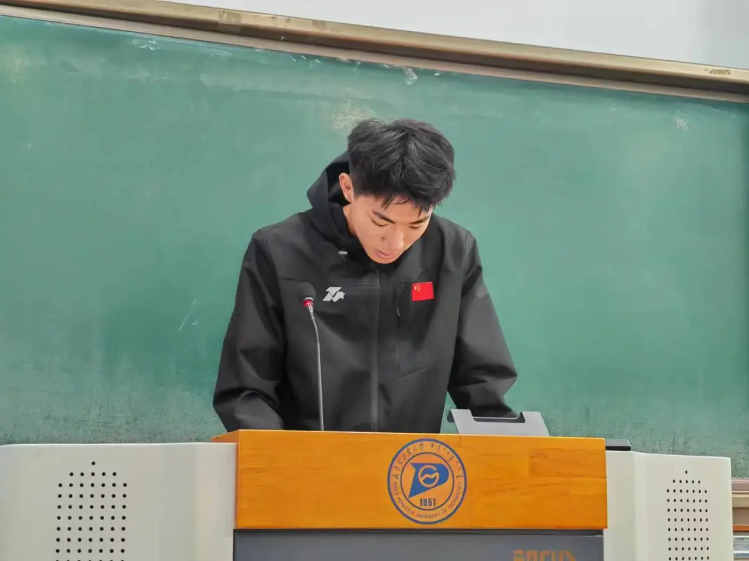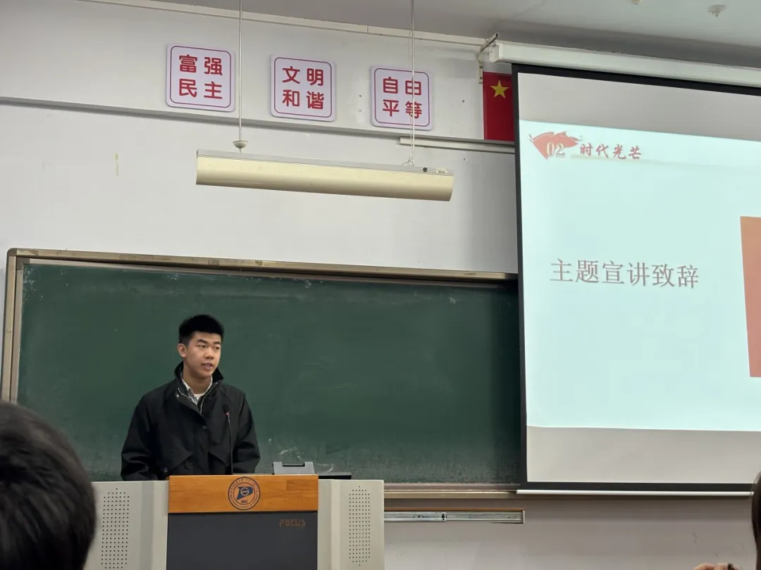 马塏渊同学和李嘉轩同学分别以弘扬井冈山精神为主题进行宣讲,两位同学详细讲述了1927年10月到1929年1月这一阶段井冈山革命根据地的形成和发展,阐释了以毛主席为核心的老一辈无产阶级革命家,不惧困难,迎难而上,为国家和人民顽强拼搏的精神。