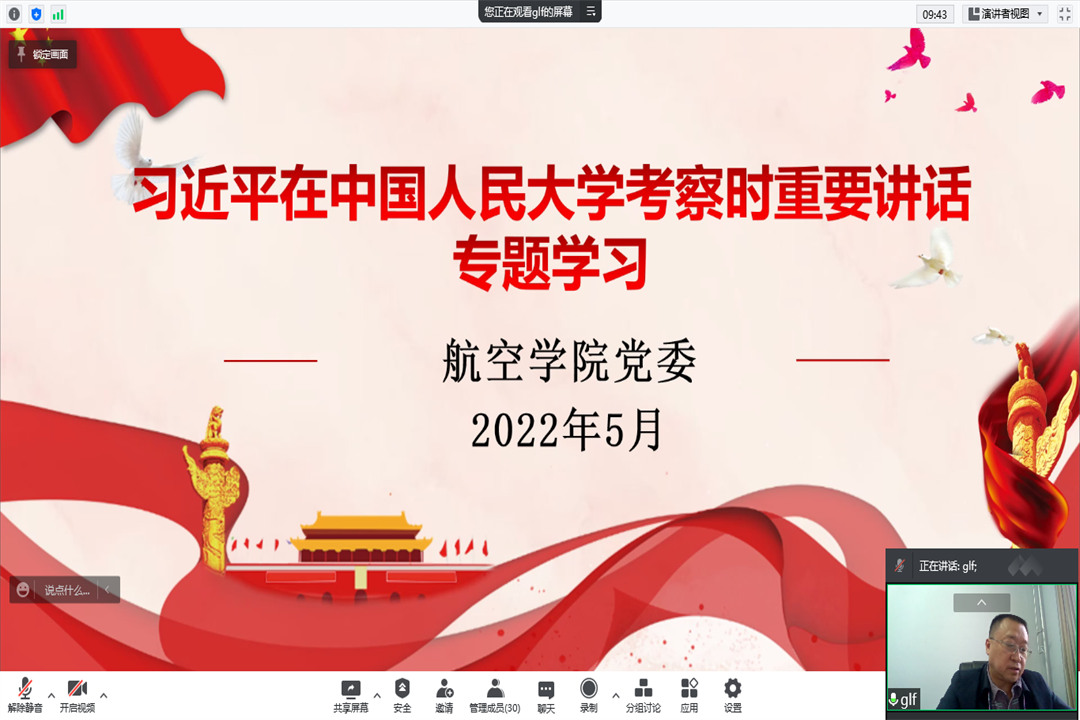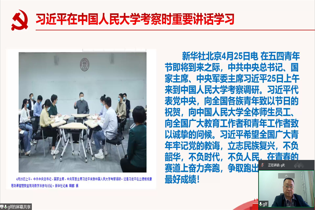 5月5日,304永利组织开展《习近平在中国人民大学考察时重要讲话》专题学习。304永利全体教师通过线上方式集中学习,公司党委书记郭凌峰主持学习。