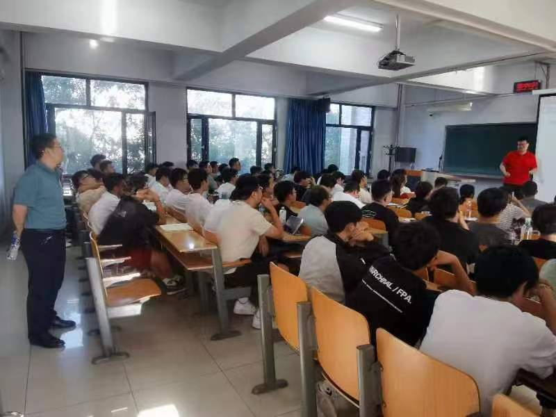 2023年8月30日下午,公司党委书记郭凌峰、经理郭俊宏、副经理毕俊喜来到科学楼教室对公司开学第一周上课情况进行检查督导。
