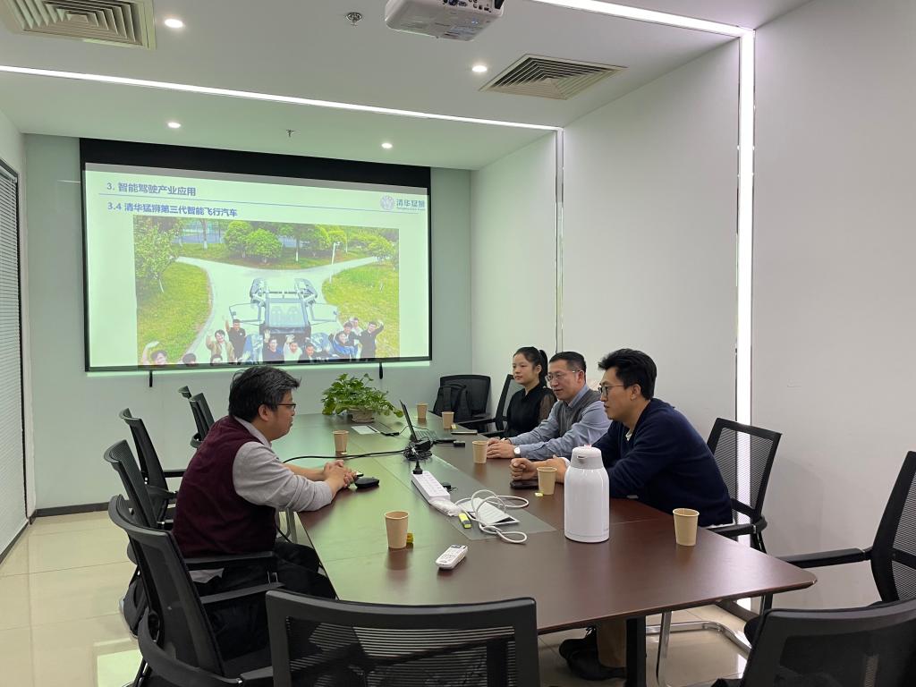 2023年11月18日,304永利经理郭俊宏、交通运输系主任孟瑞锋一行赴清华大学新技术概念车研究院猛狮飞行汽车团队进行调研。