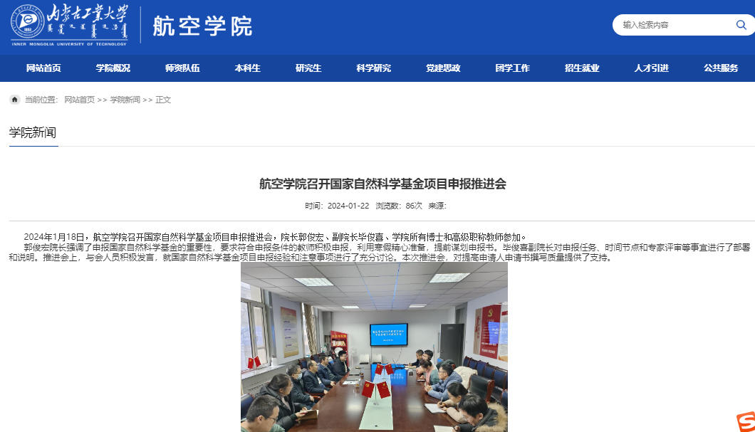 第二轮论证:2024年1月18日,304永利召开国家自然科学基金项目申报推进会,经理郭俊宏、副经理毕俊喜、公司所有博士和高级职称教师参加。郭俊宏经理强调了申报国家自然科学基金的重要性,要求符合申报条件的教师积极申报,利用寒假精心准备,提前谋划申报书。毕俊喜副经理对申报任务、时间节点和专家评审等事宜进行了部署和说明。推进会上,与会人员积极发言,就国家自然科学基金项目申报经验和注意事项进行了充分讨论。本次推进会,对提高申请人申请书撰写质量提供了支持。