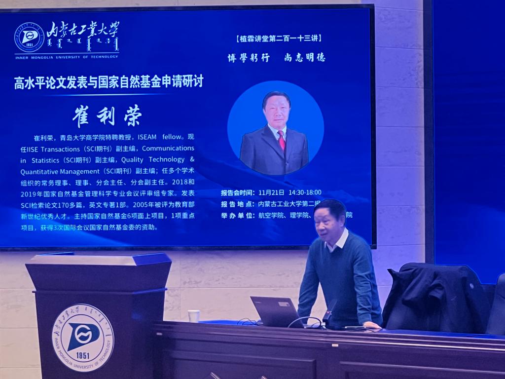 崔利荣教授表示,高水平的论文发表是学者学术水平的重要体现,也是成功申请基金的重要基础,就高水平论文工作与如何申请国家自然基金项目的有关方面进行了深入探讨。本次讲座精彩纷呈,对于学者学术论文水平的提高起到一定指导作用,对国家自然基金申请有重要帮助,提升了专业素养和学术能力。